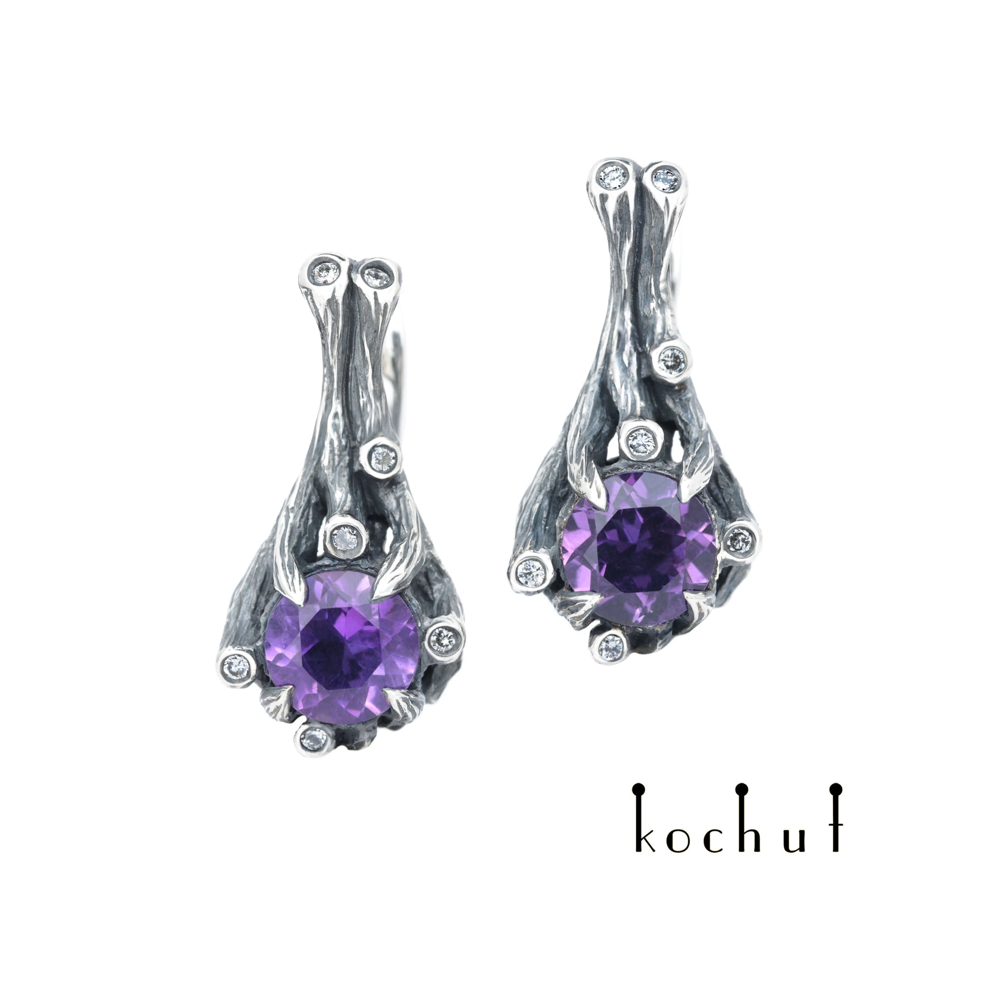 Verzauberter Wald — Ohrringe aus oxidiertem Silber mit Amethysten und Diamanten