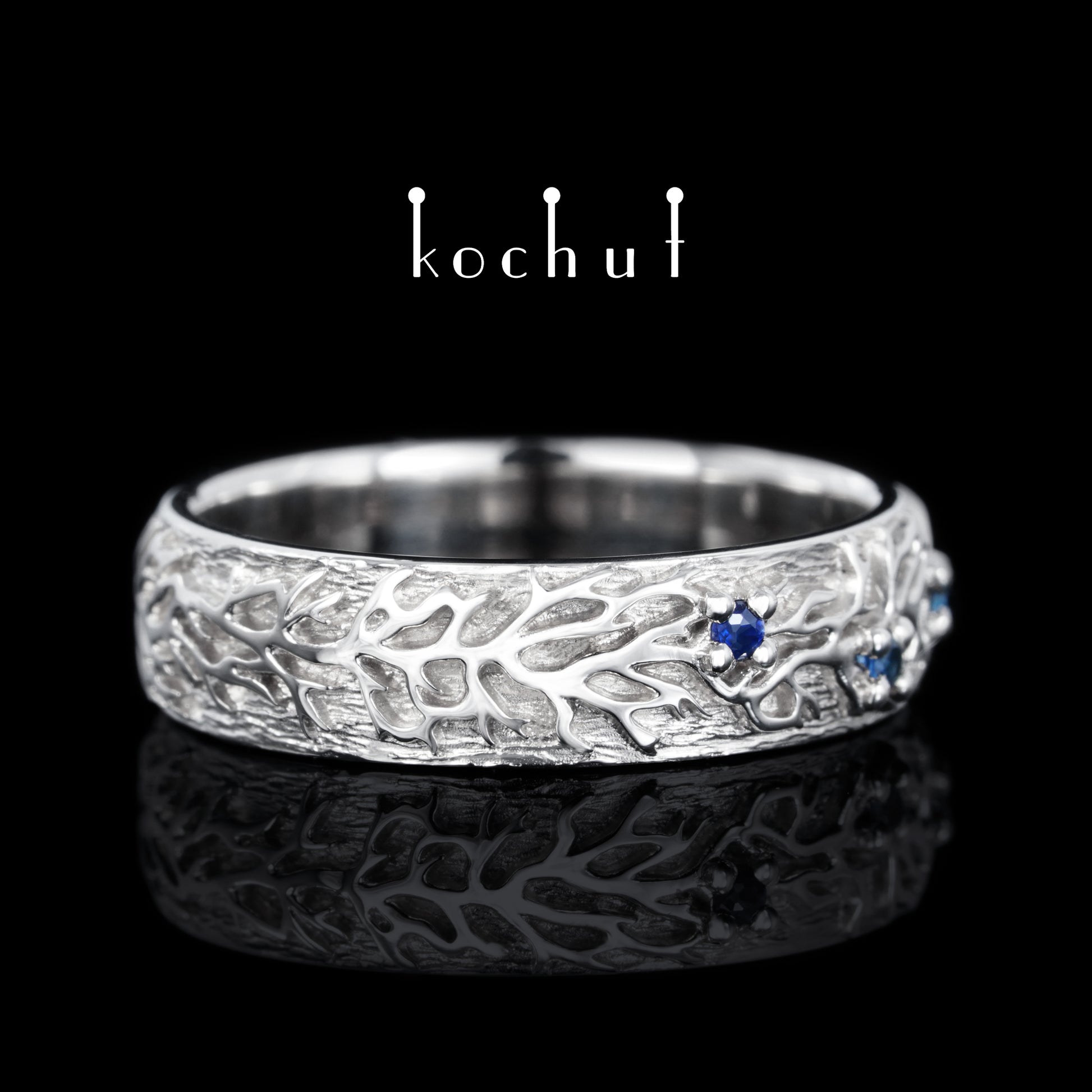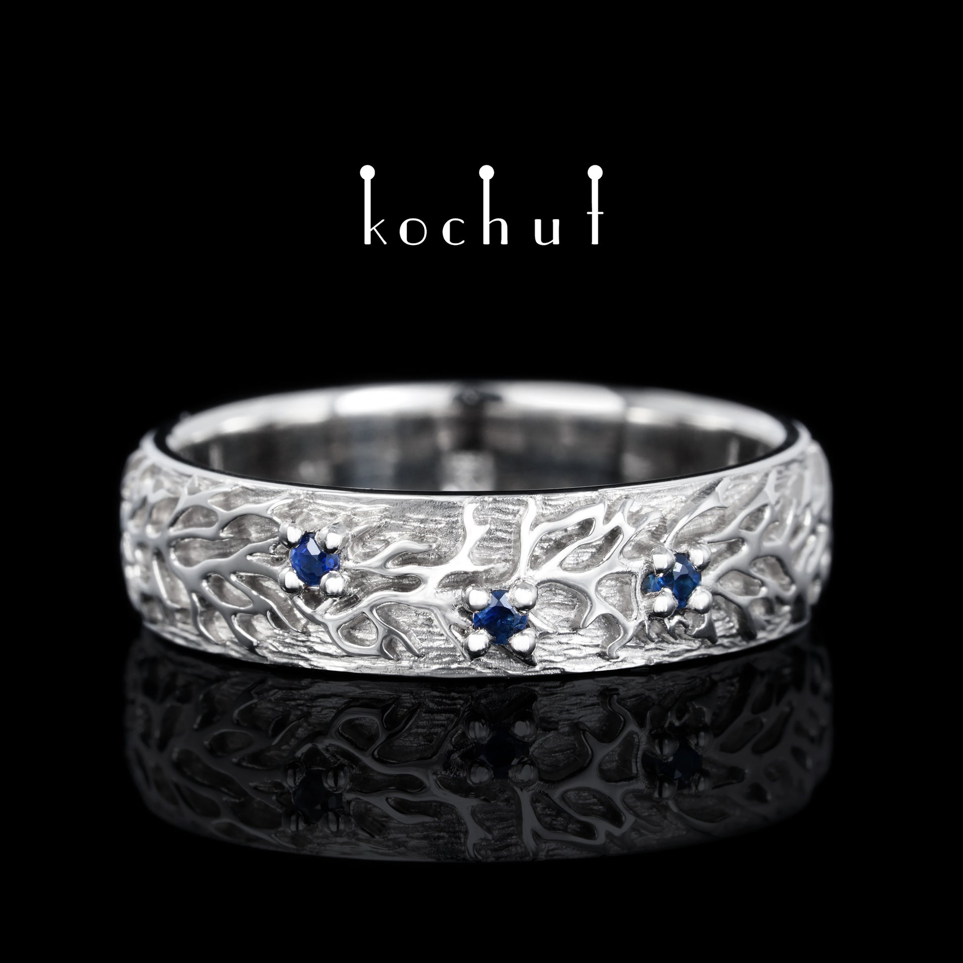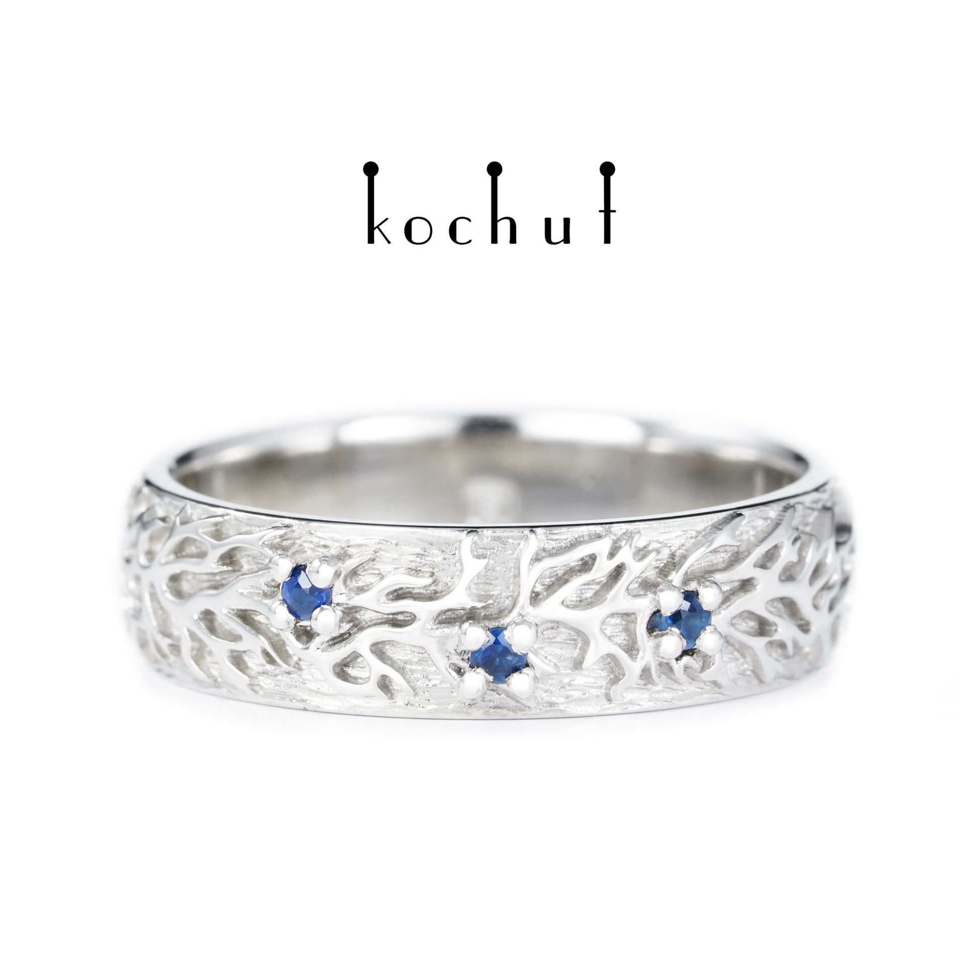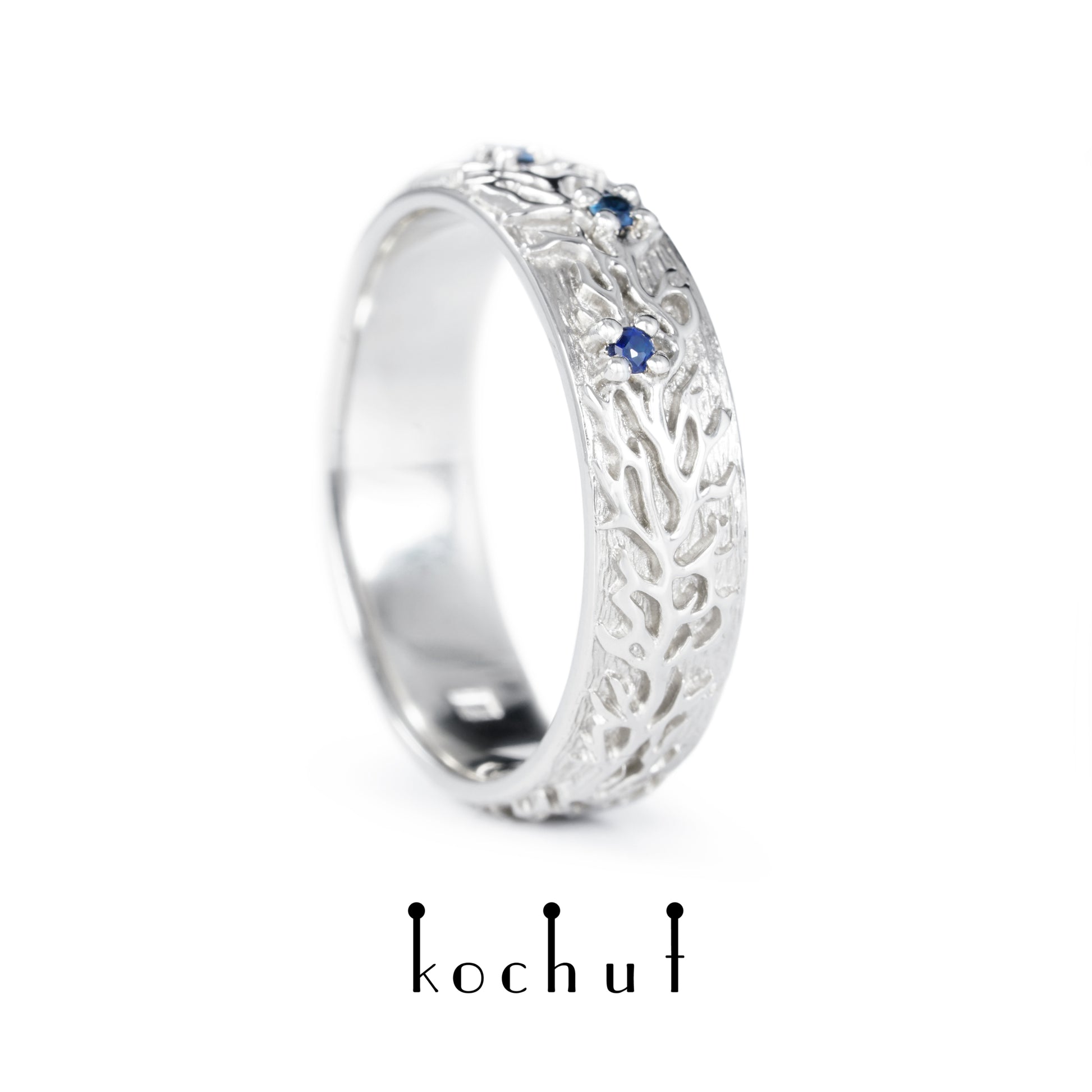 Wald — Ehering aus Weißgold mit Saphiren, beschichtet mit weißem Rhodium