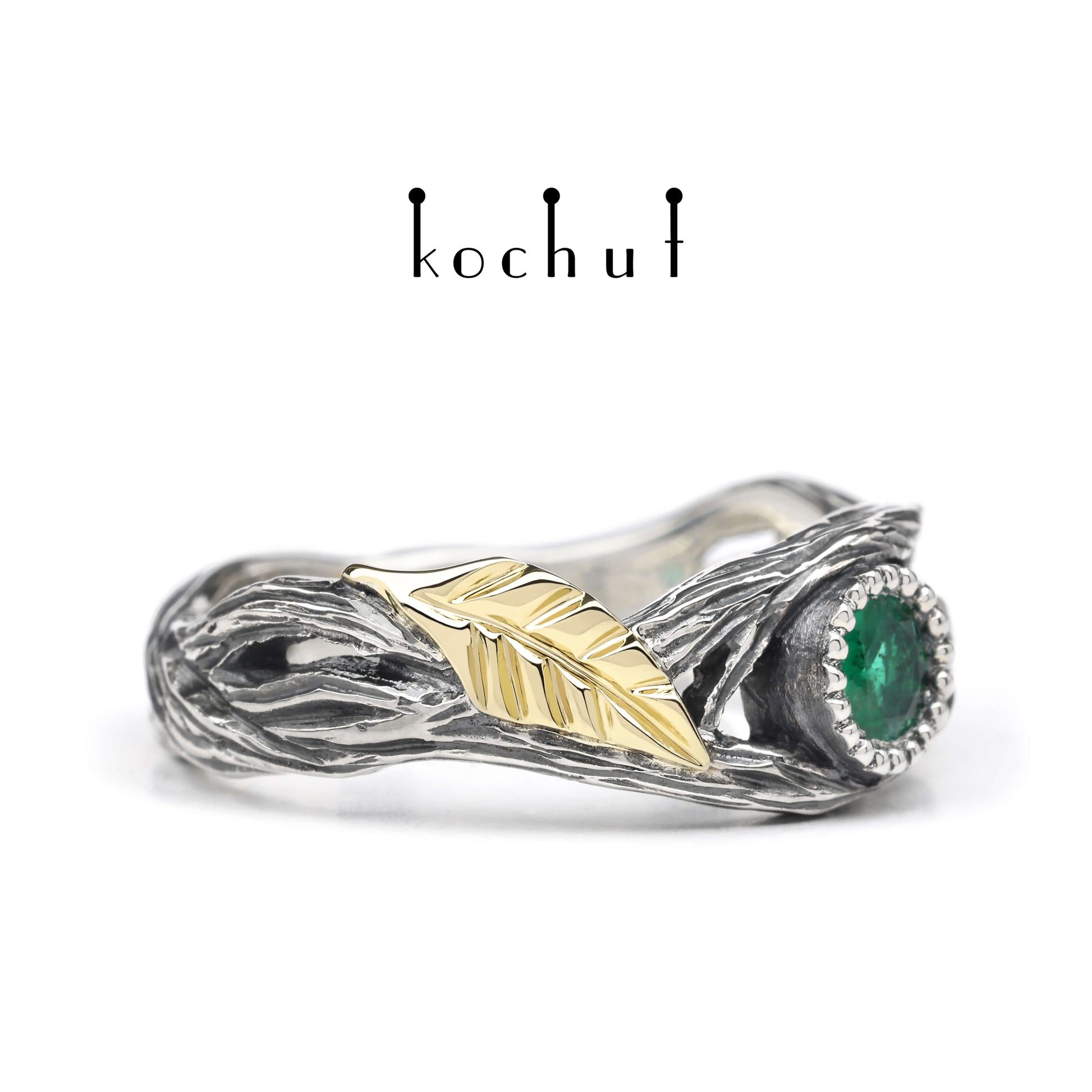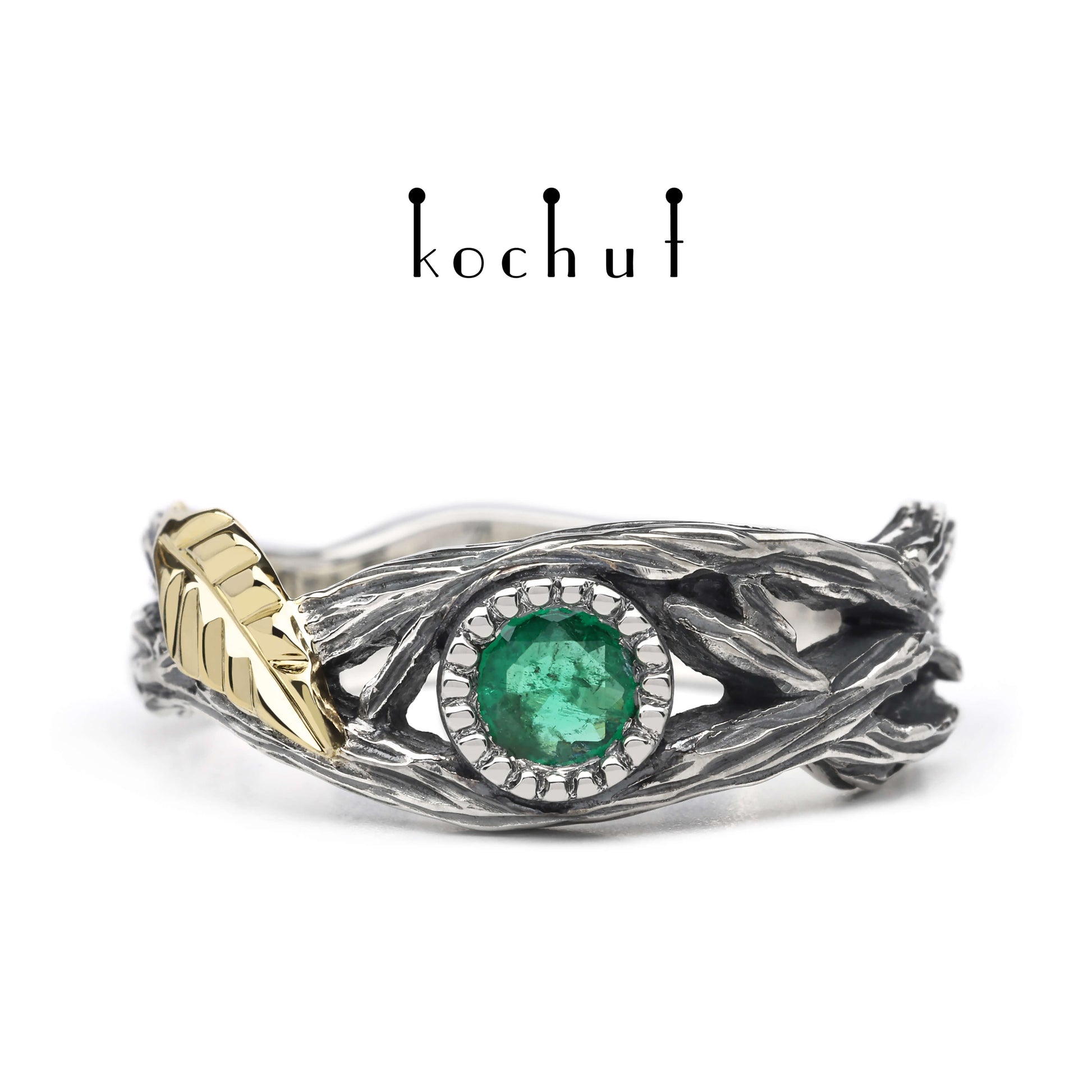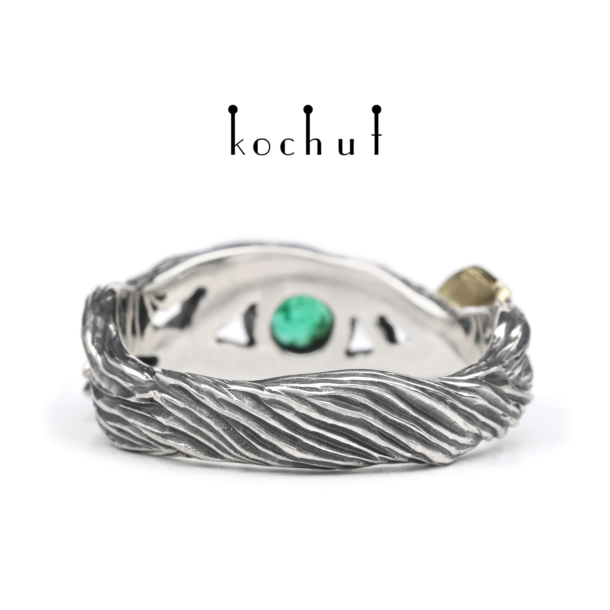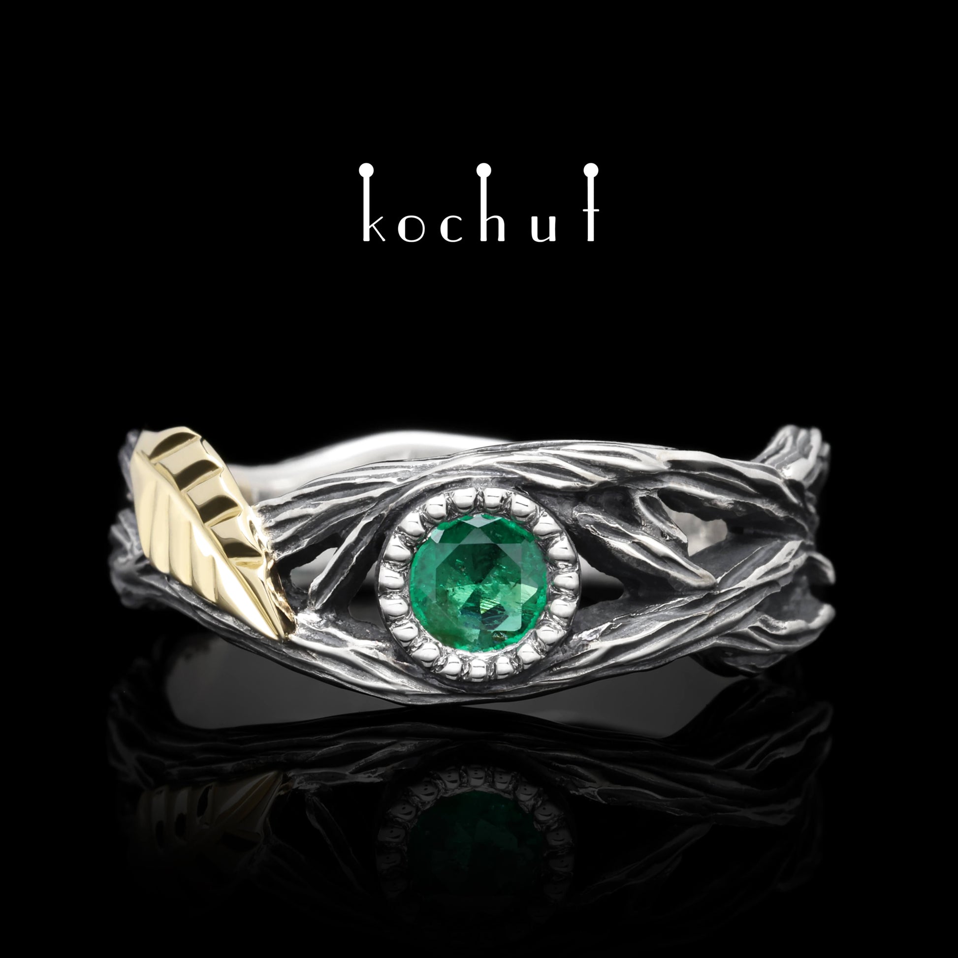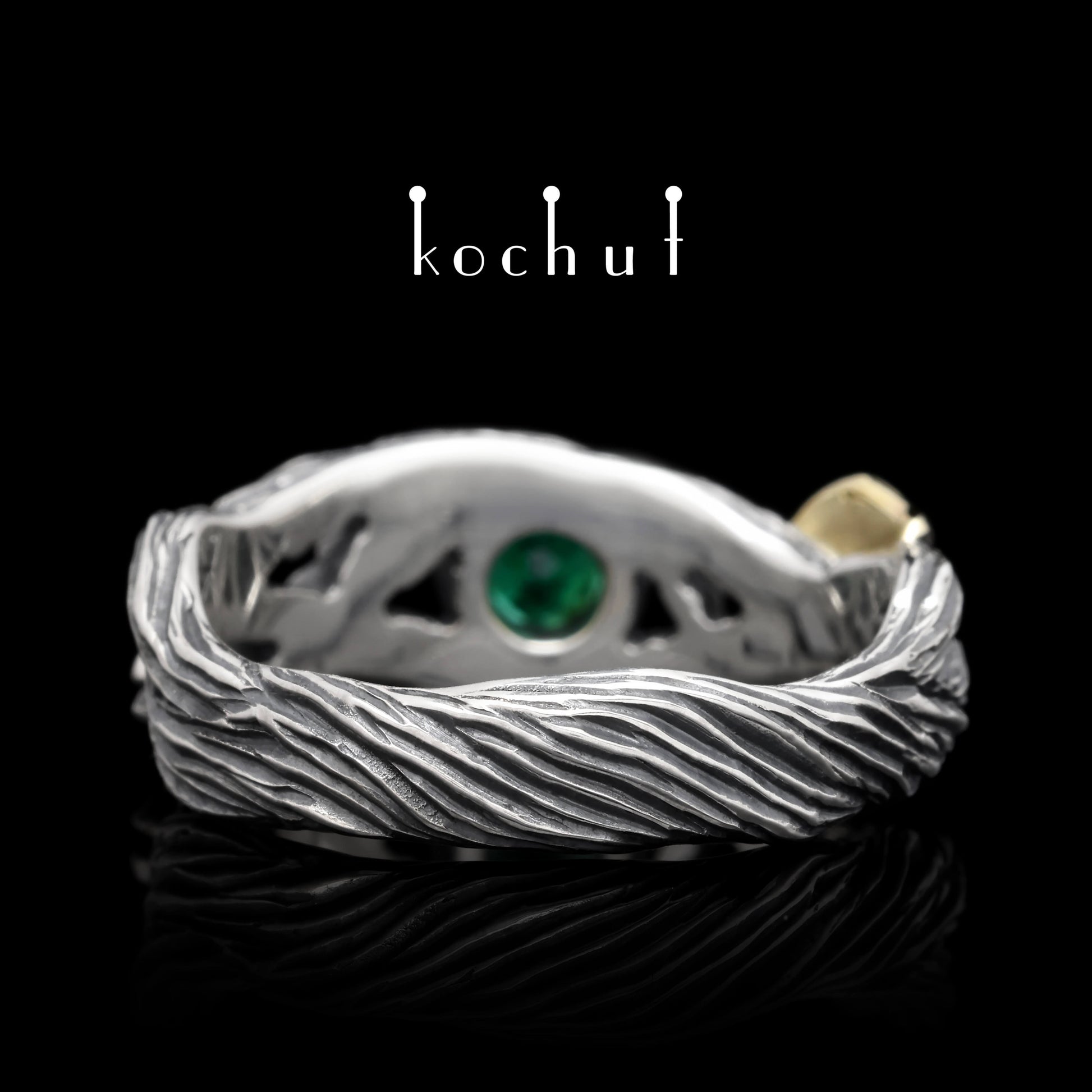 Waldfee — Ring aus oxidiertem Silber und Gelbgold mit Smaragd
