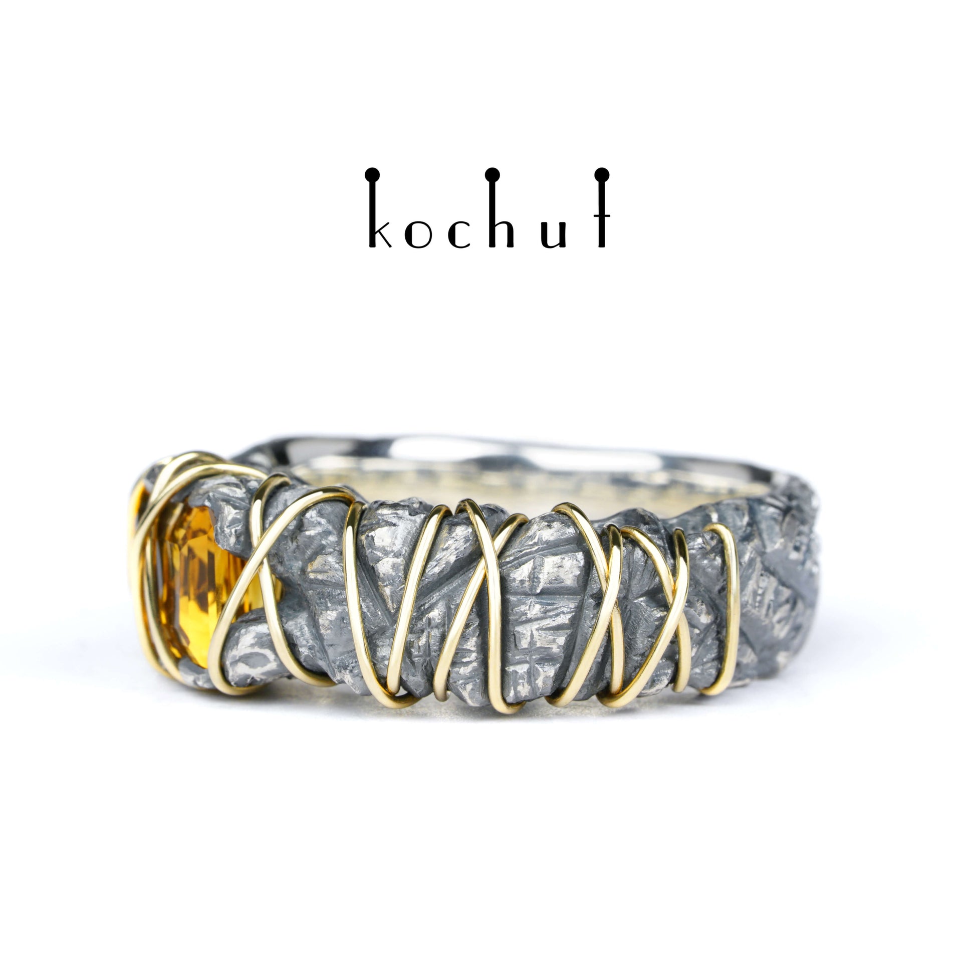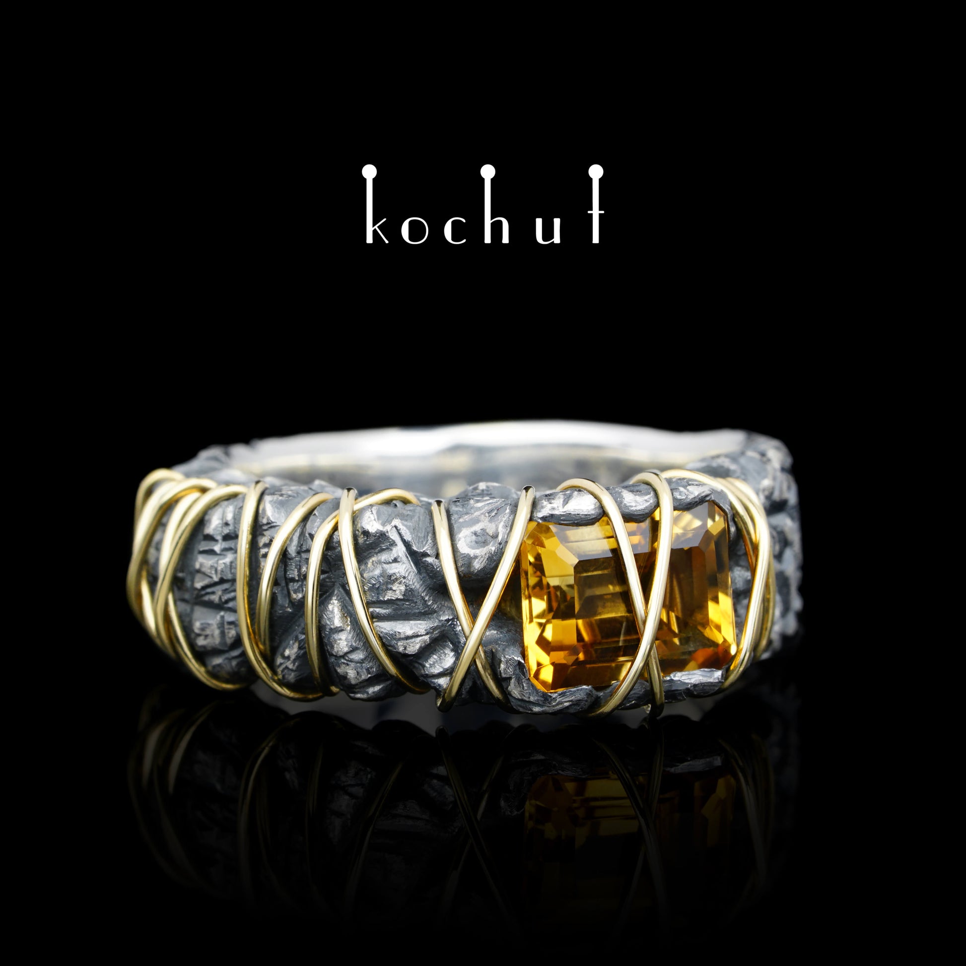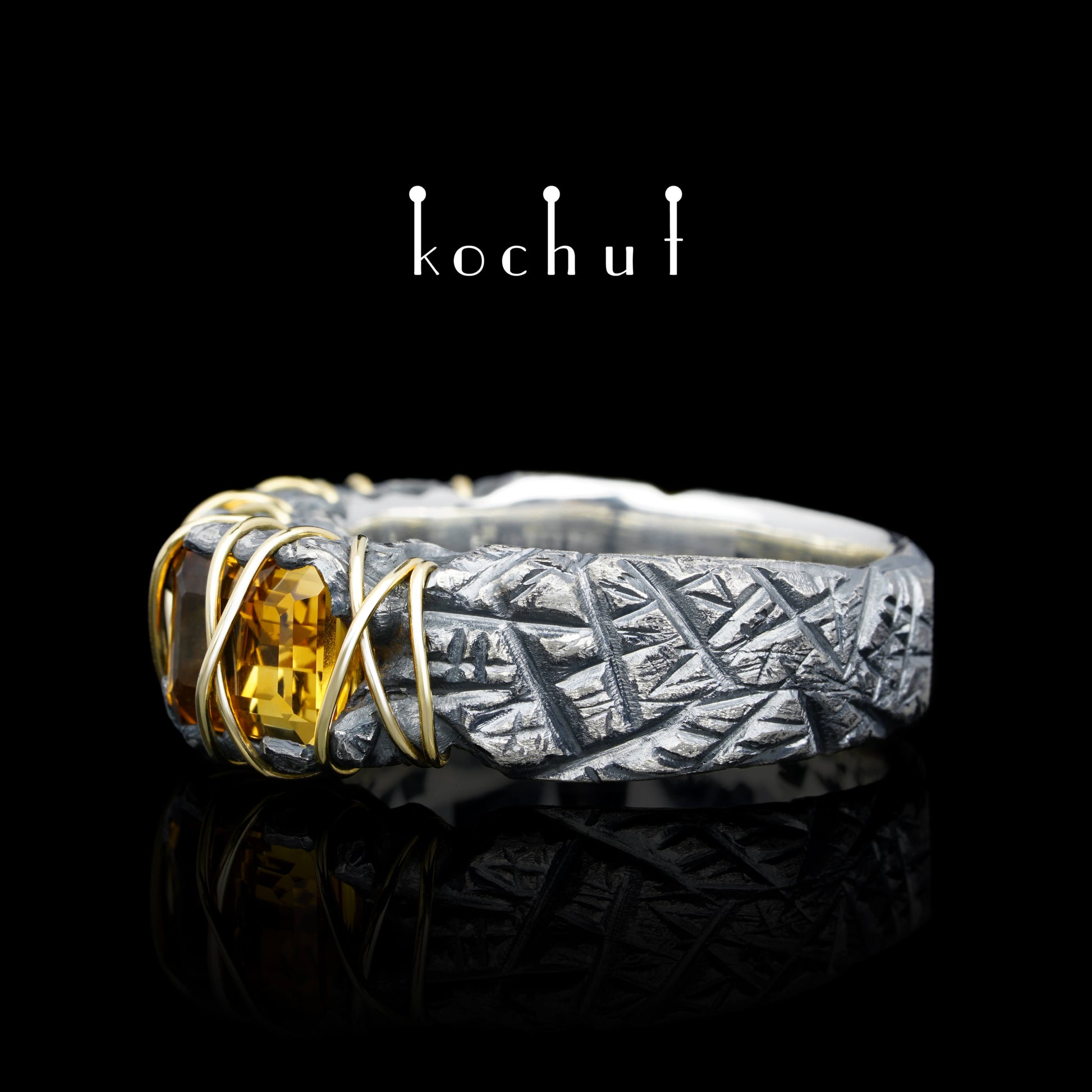 Wiedergeburt — Ring aus oxidiertem Silber und Gelbgold mit Citrin