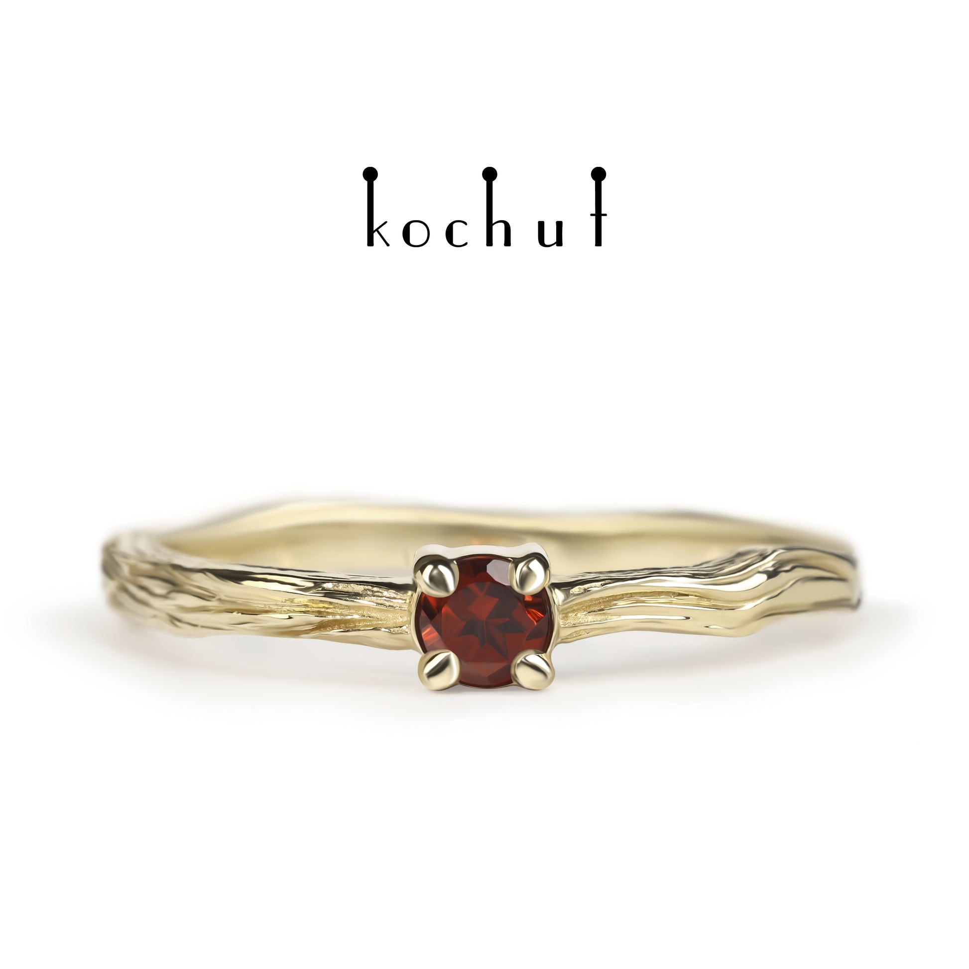 Winterzweig — Ring aus Gelbgold mit Granat