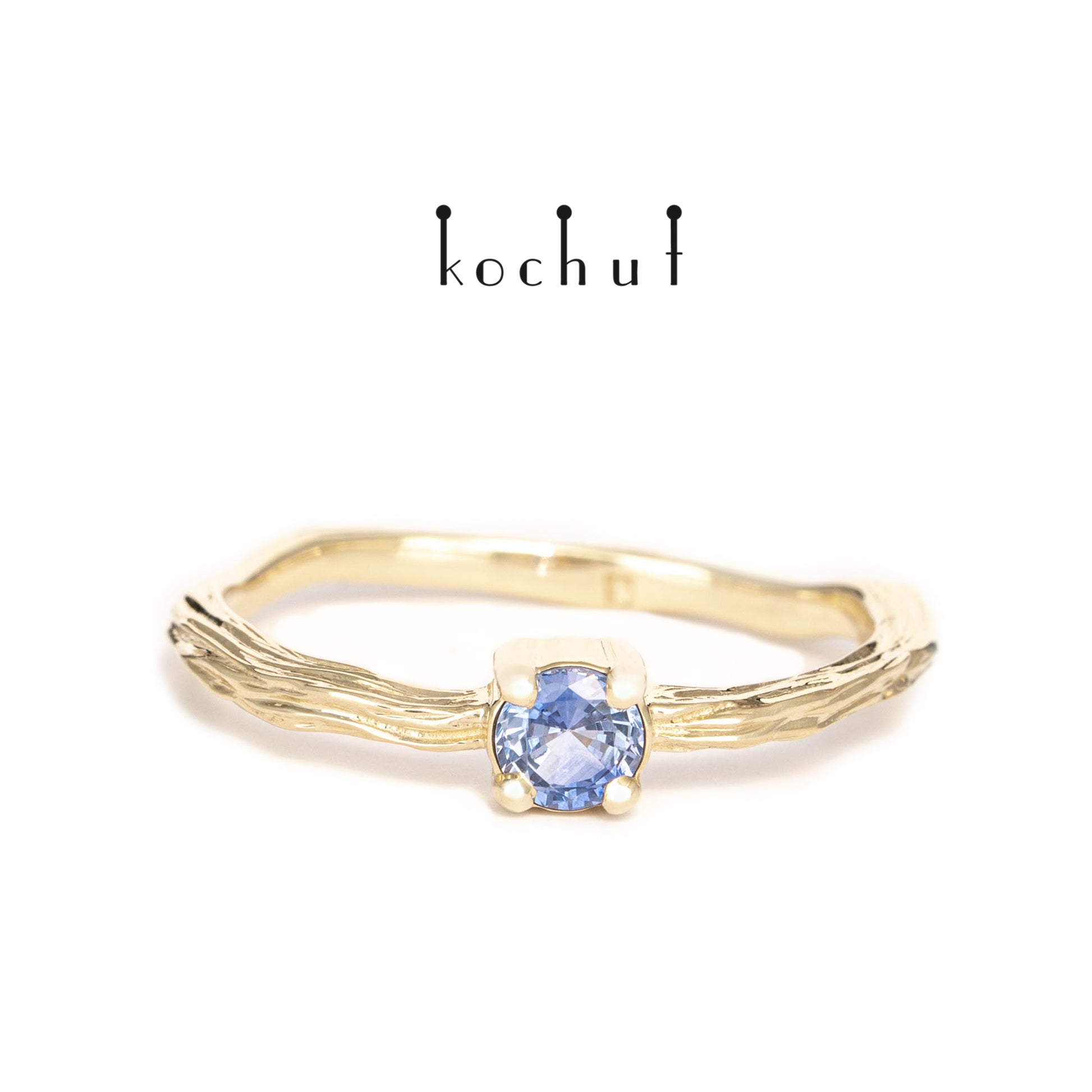 Winterzweig — Ring aus Gelbgold mit Kornblumen-Saphir