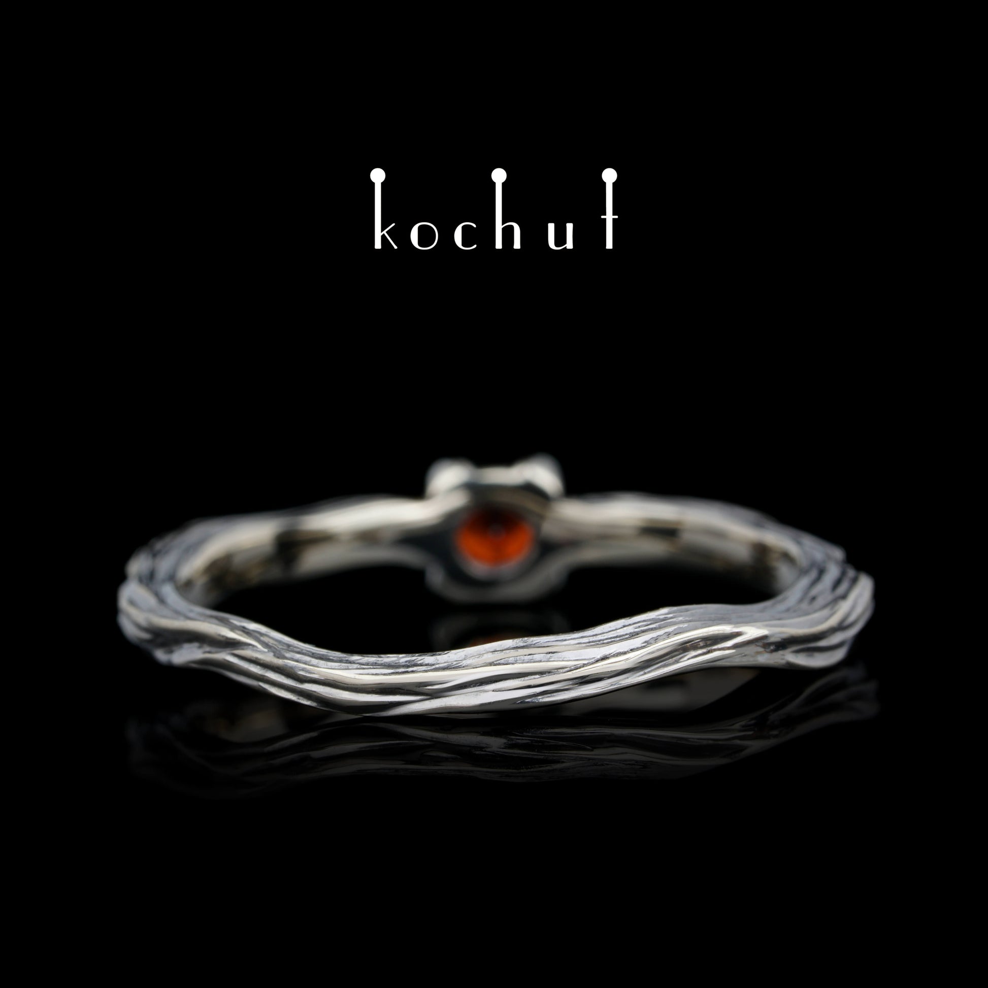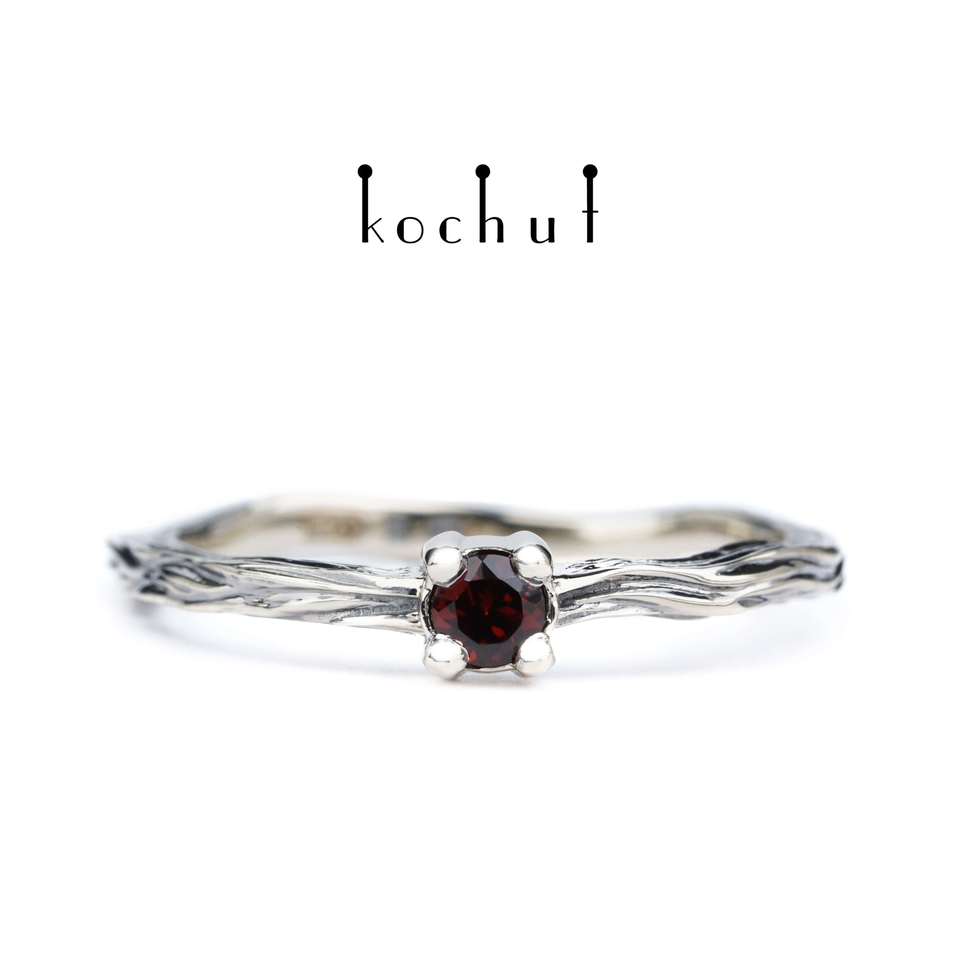 Winterzweig — Ring aus Weißgold mit Granat, beschichtet mit schwarzem Rhodium
