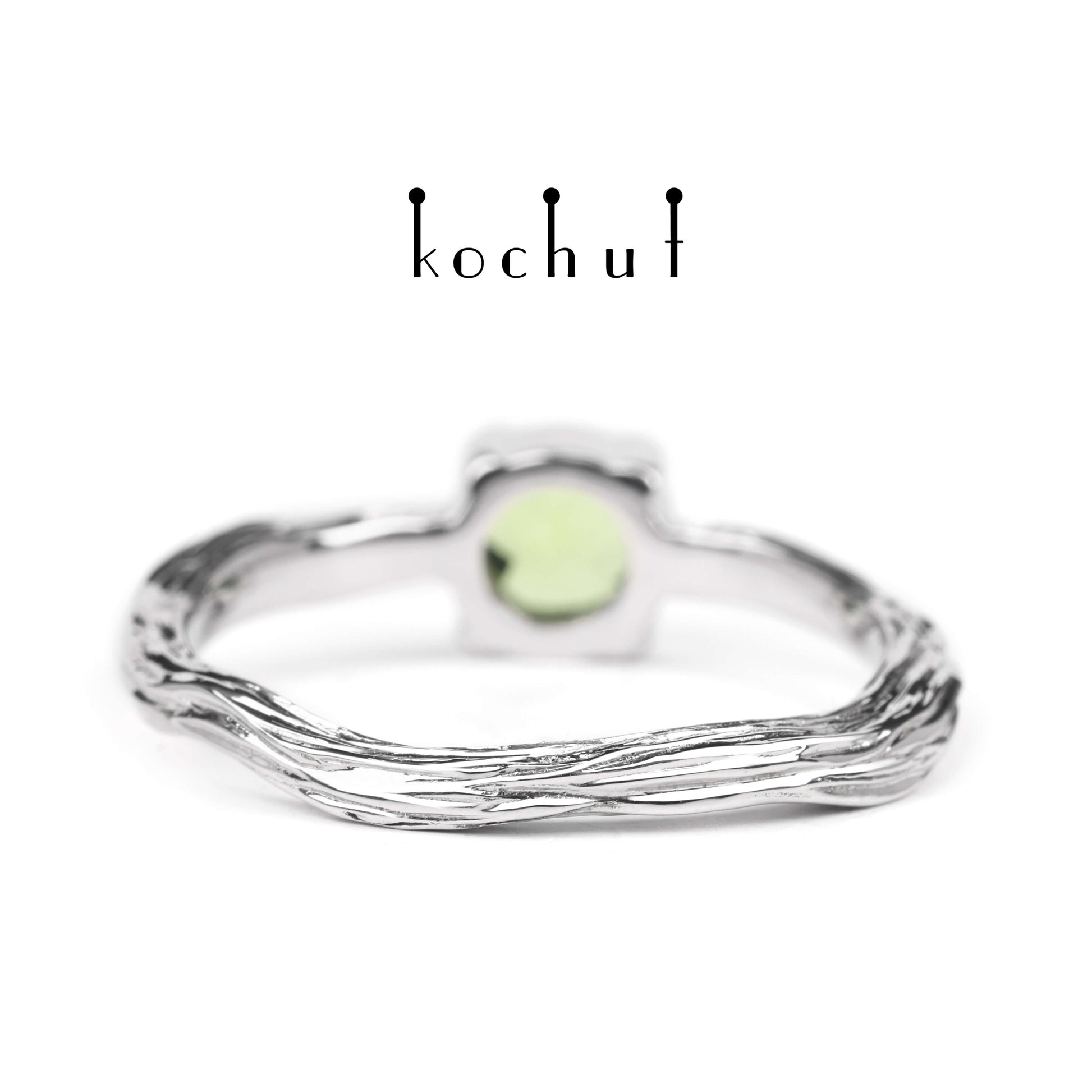 Winterzweig — silberner Ring mit einem Chrysolith, beschichtet mit weißem Rhodium