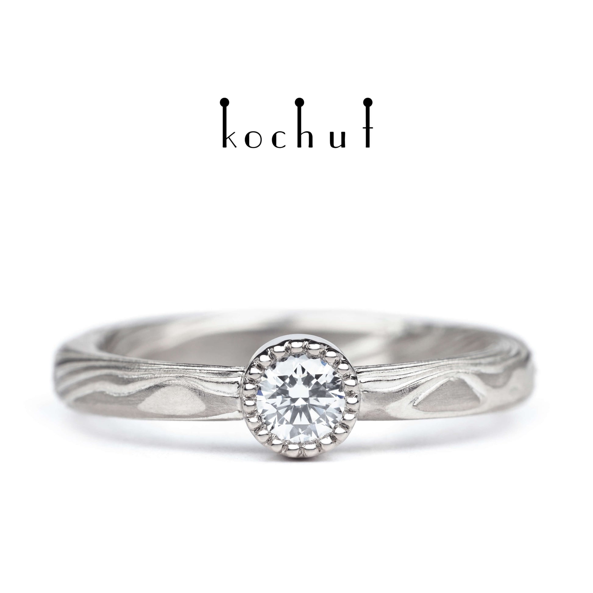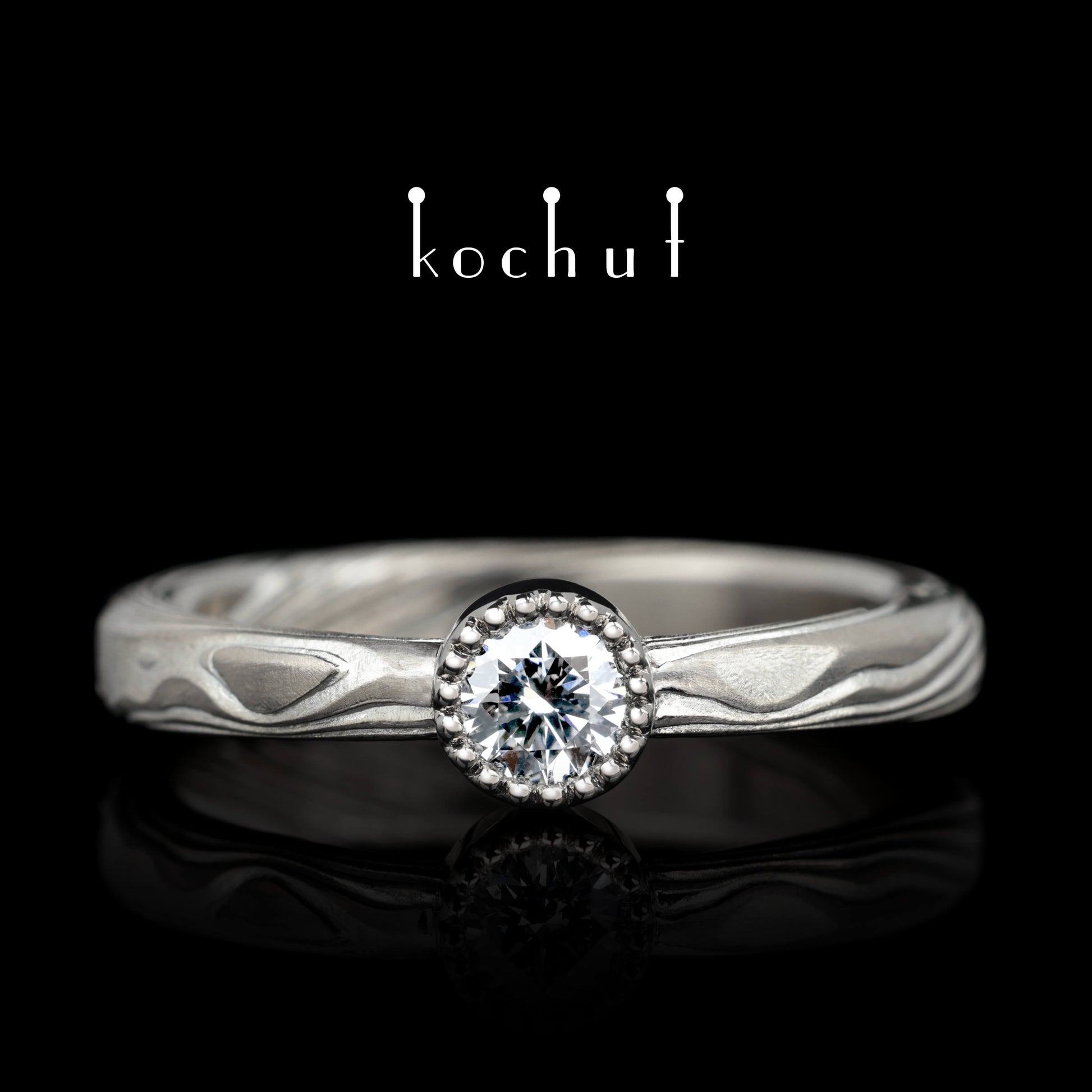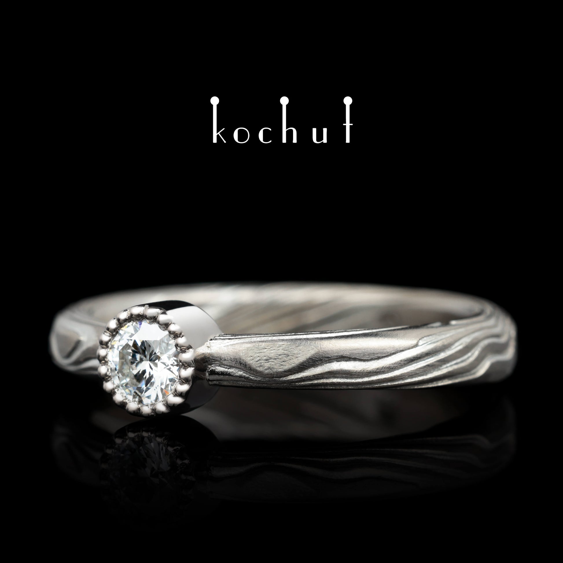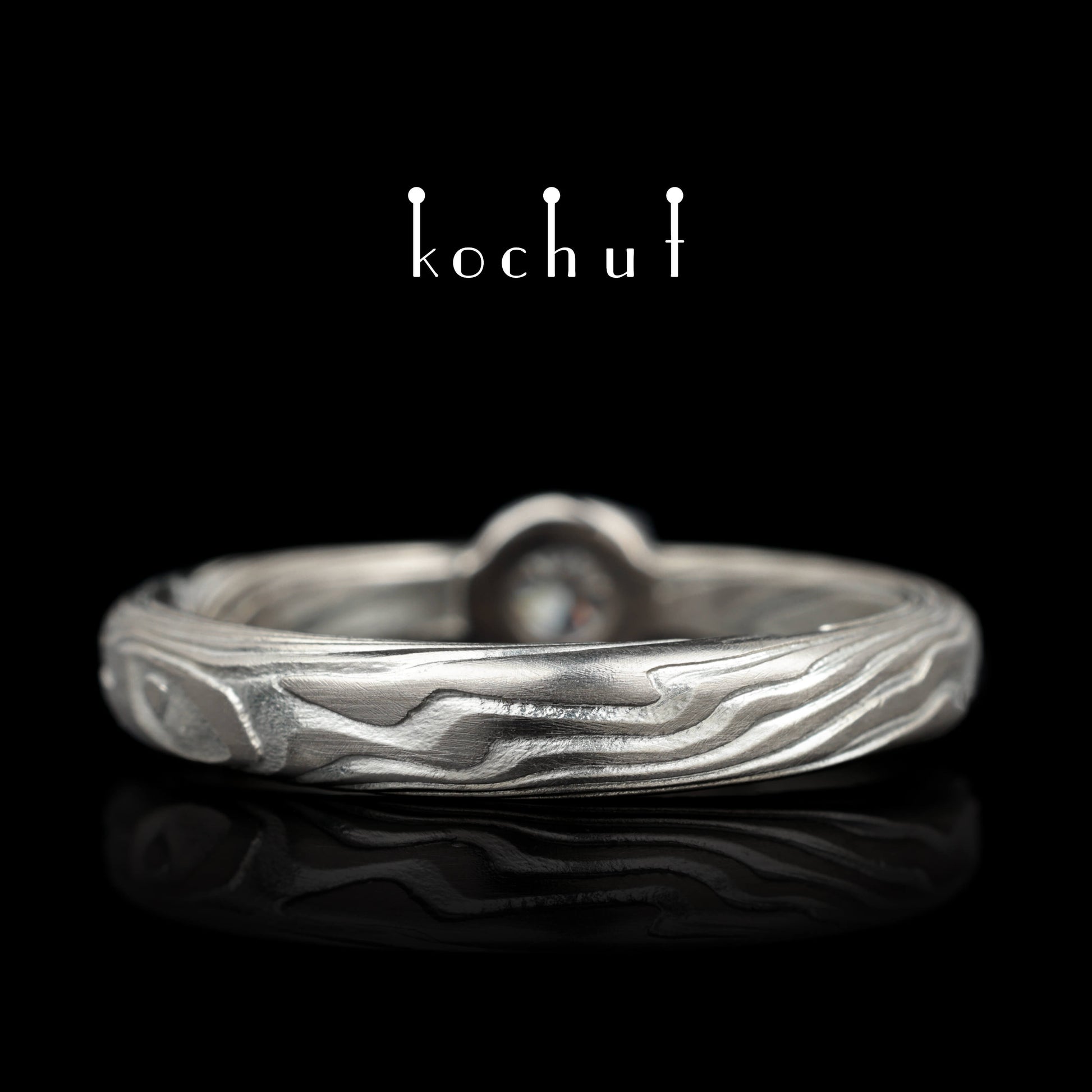 Yuna — Mokume-Verlobungsring aus Palladium-Gold, graviertem Silber mit einem Diamanten