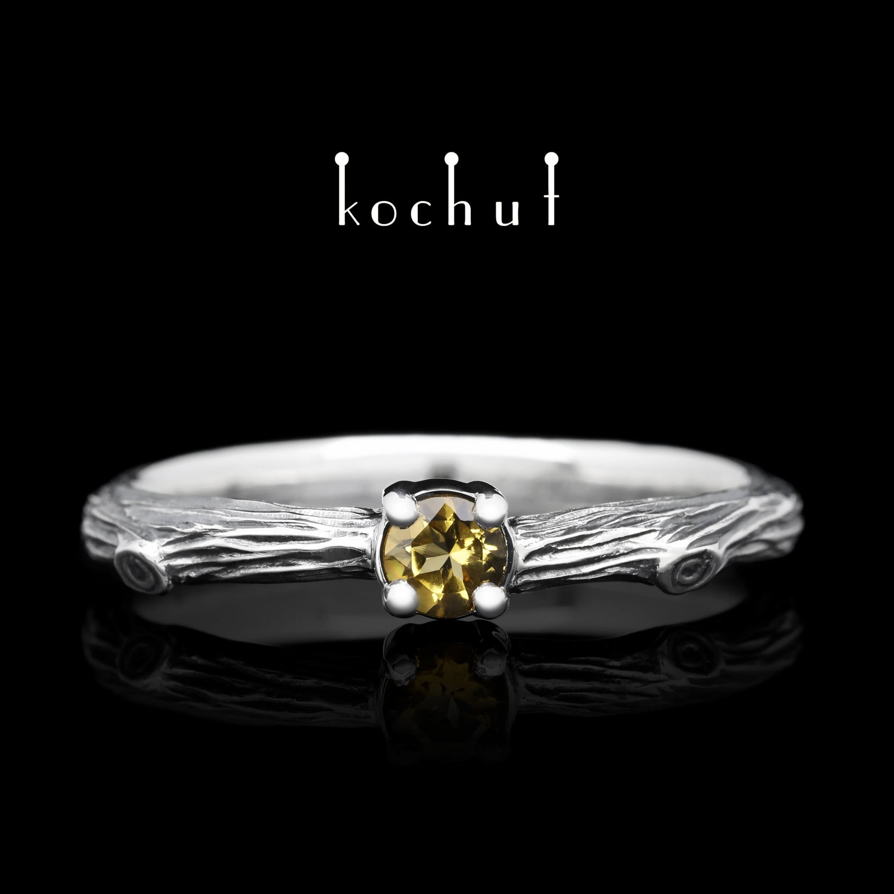 Zartes Zweig — Ring aus oxidiertem Silber mit Citrin