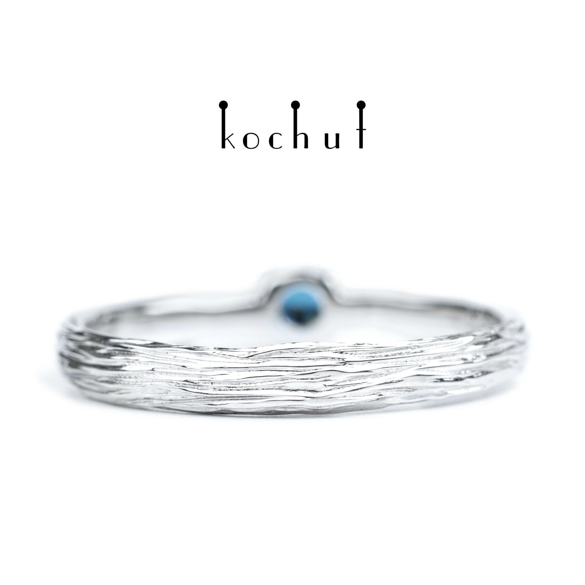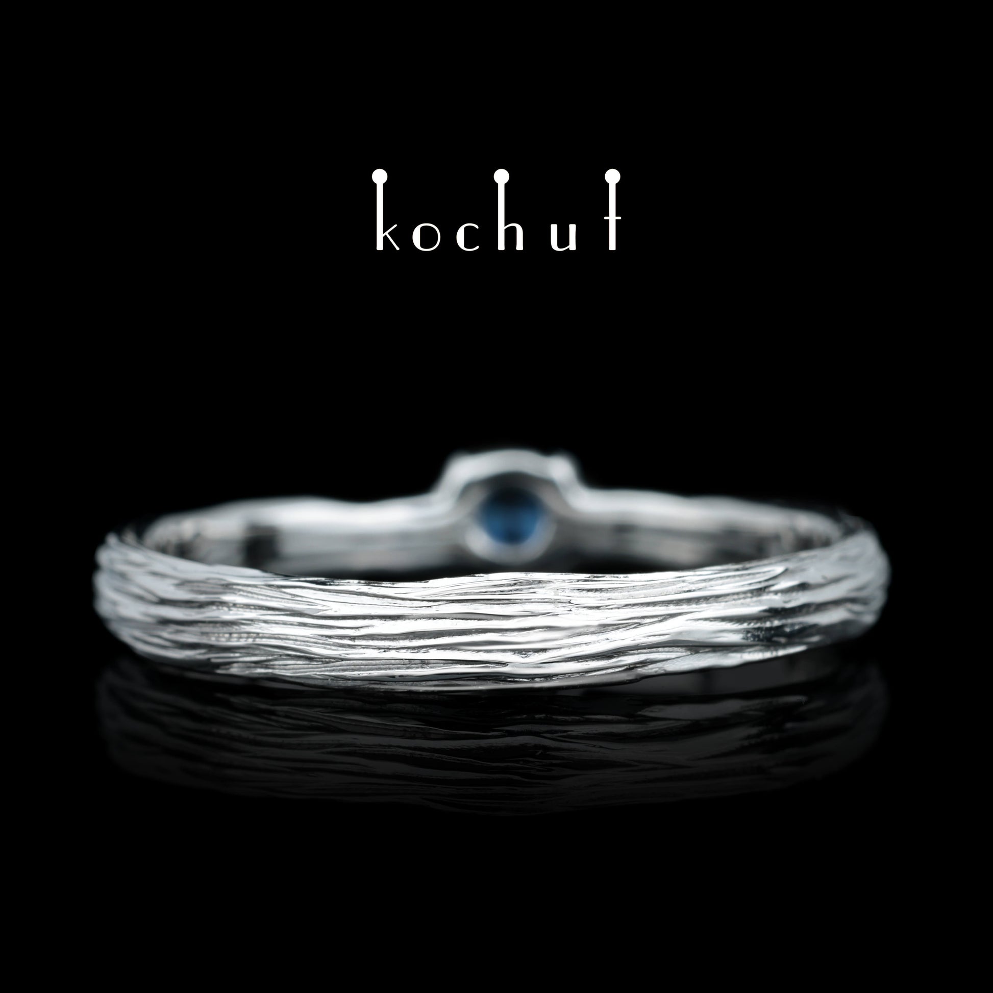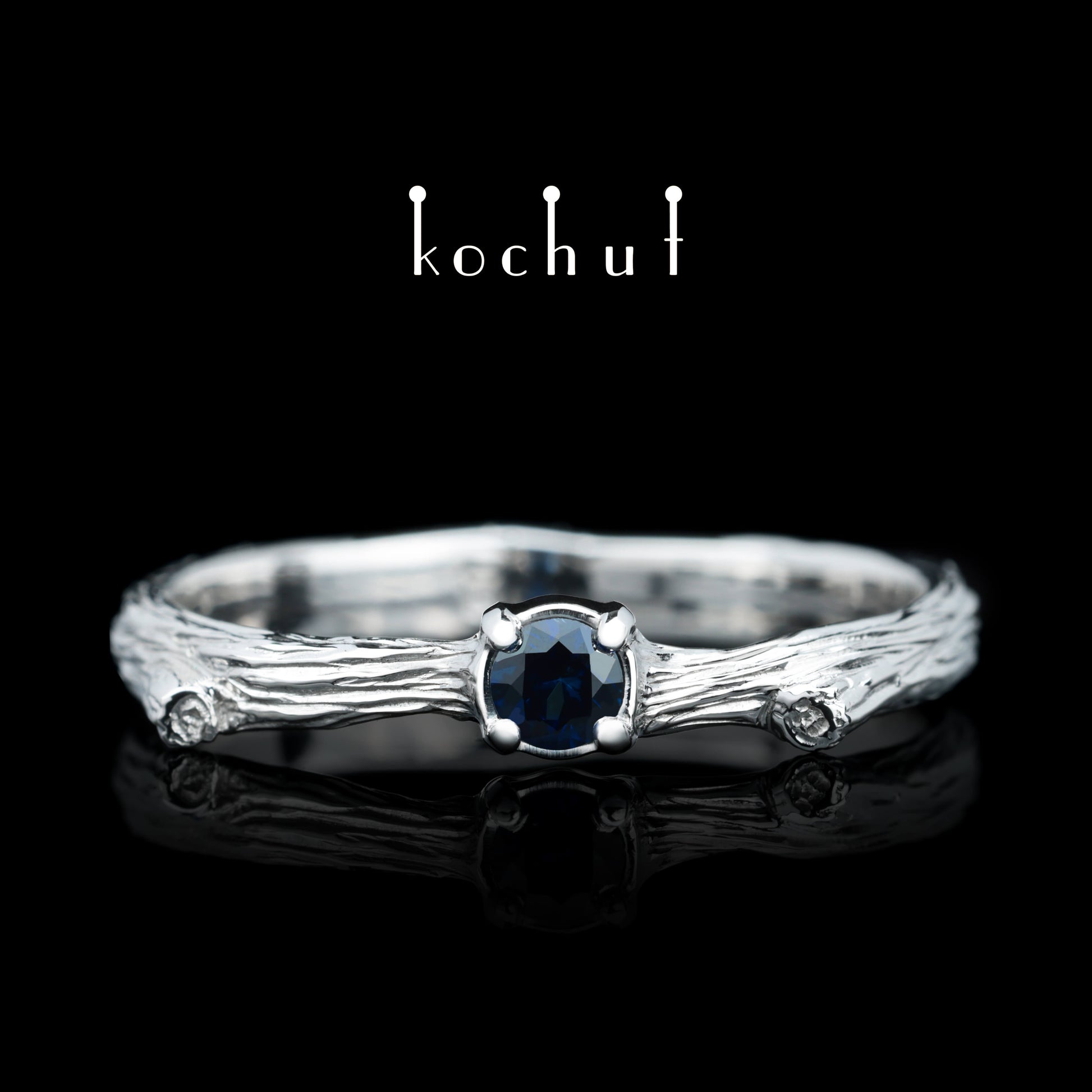 Zartes Zweig — silberner Ring mit einem Saphir, beschichtet mit WeißgoldrhODIUM