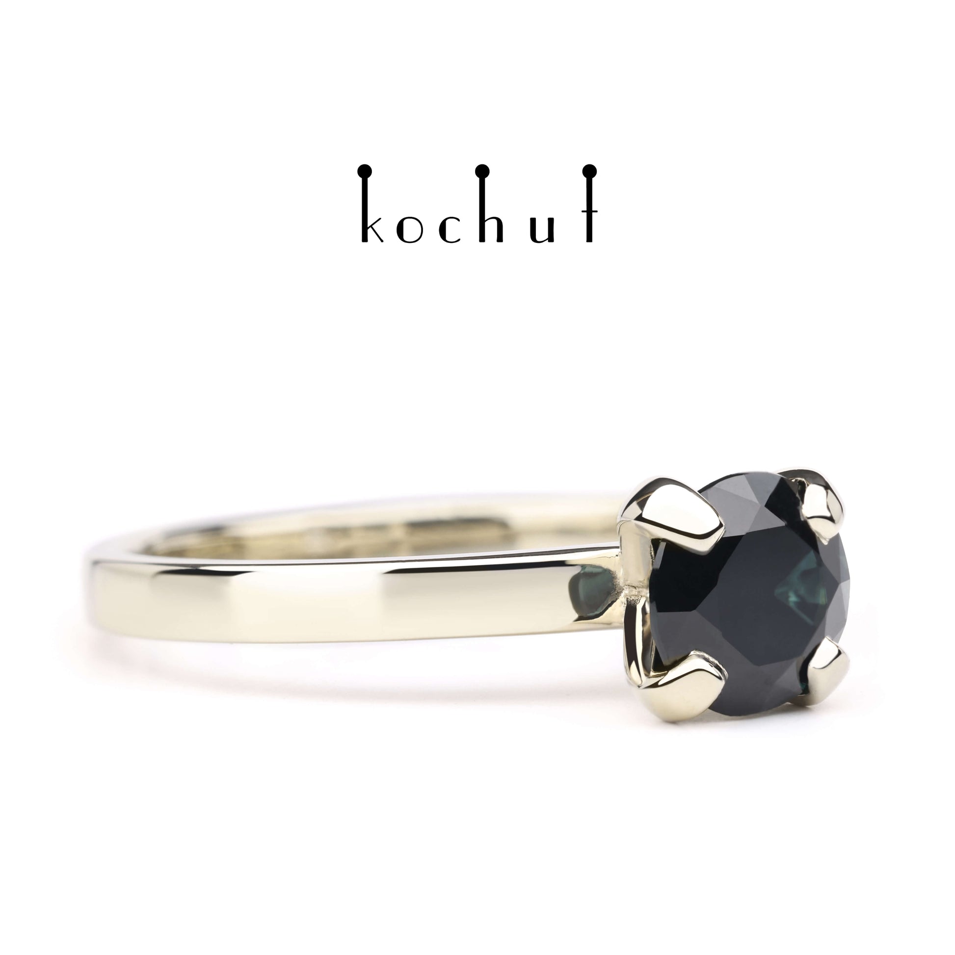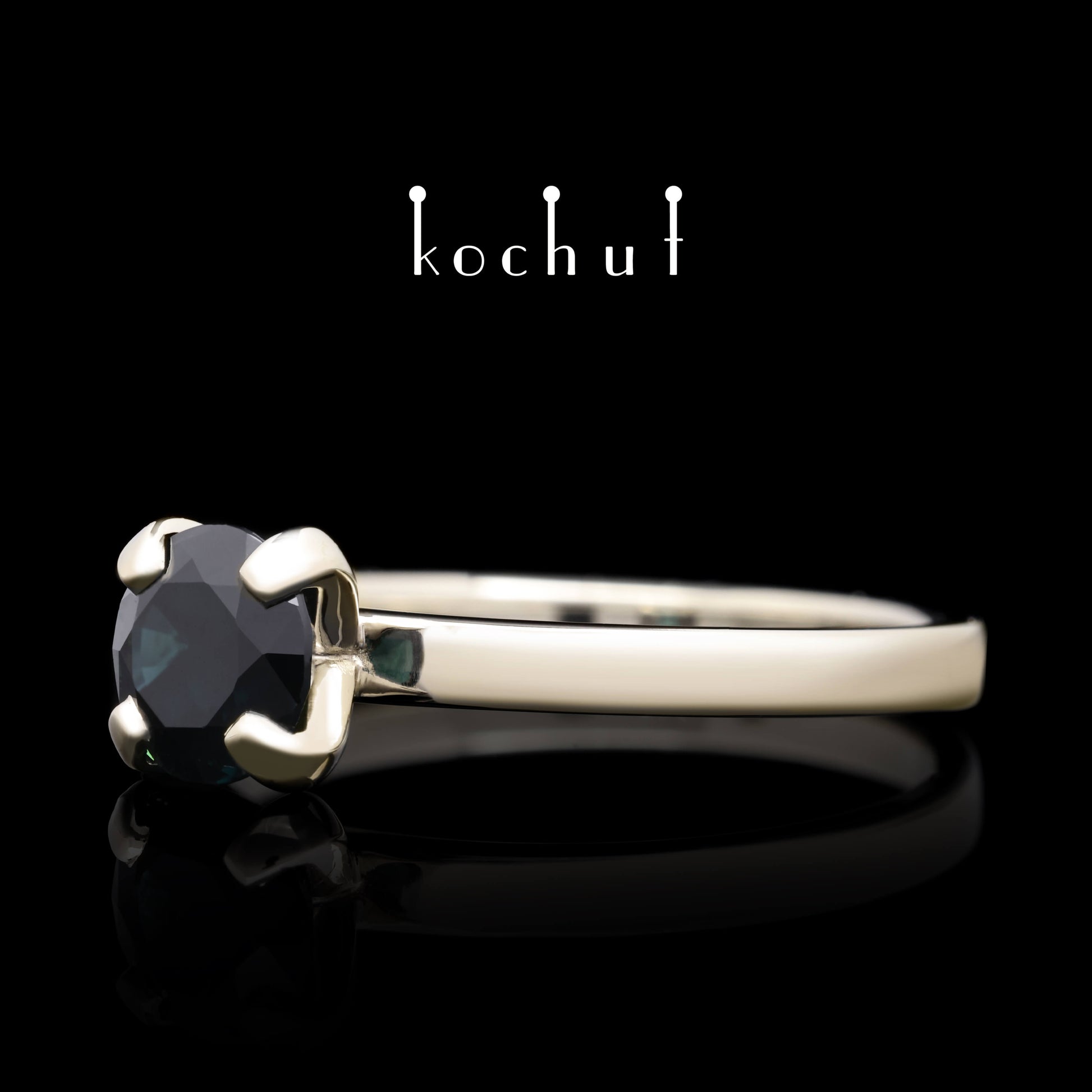 Im goldenen Schaft des Rings – ein satter blauer Saphir, das sind die blauen Augen der Liebe und Treue.